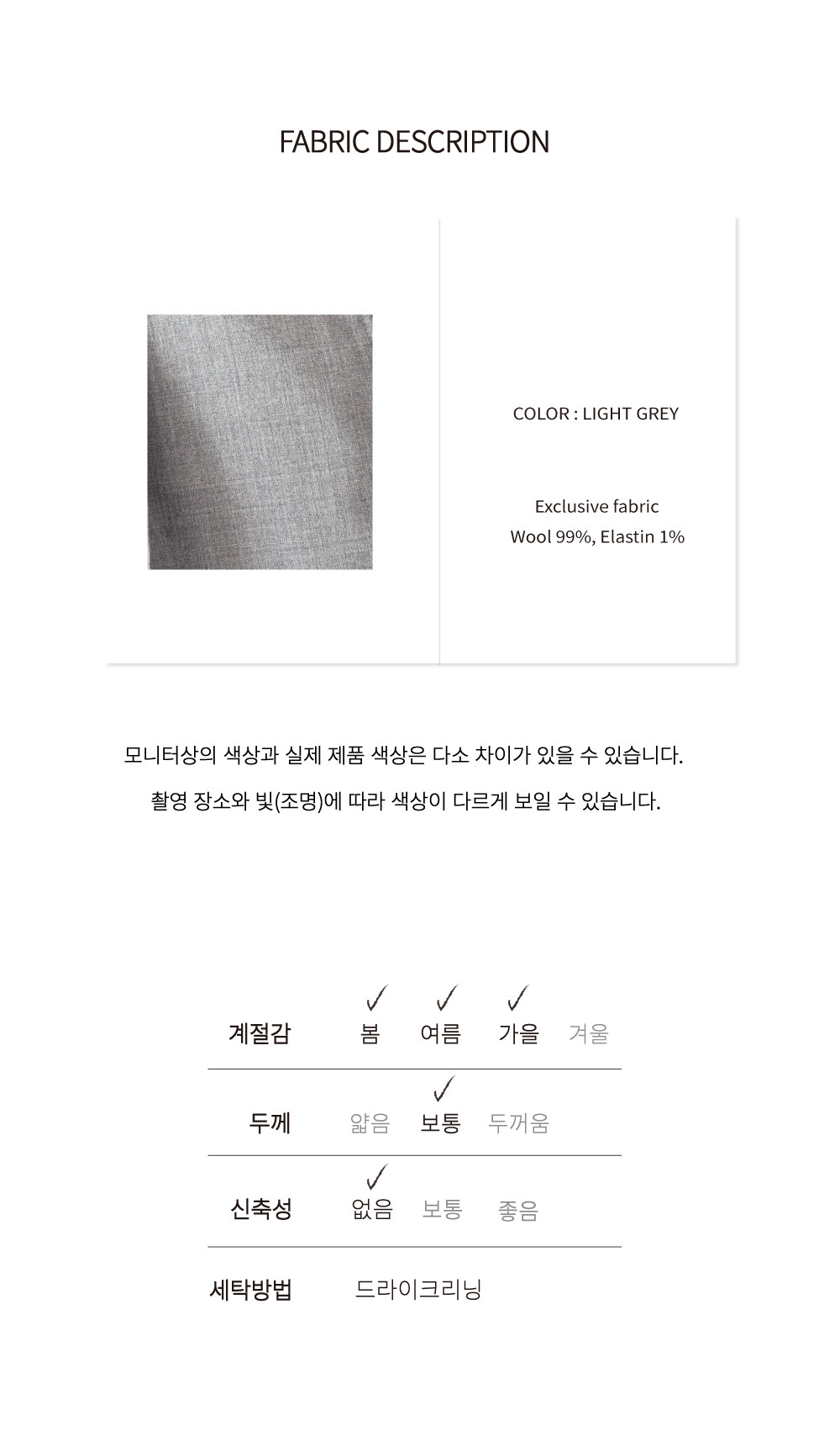 - Wool 99%, Elastin 1%