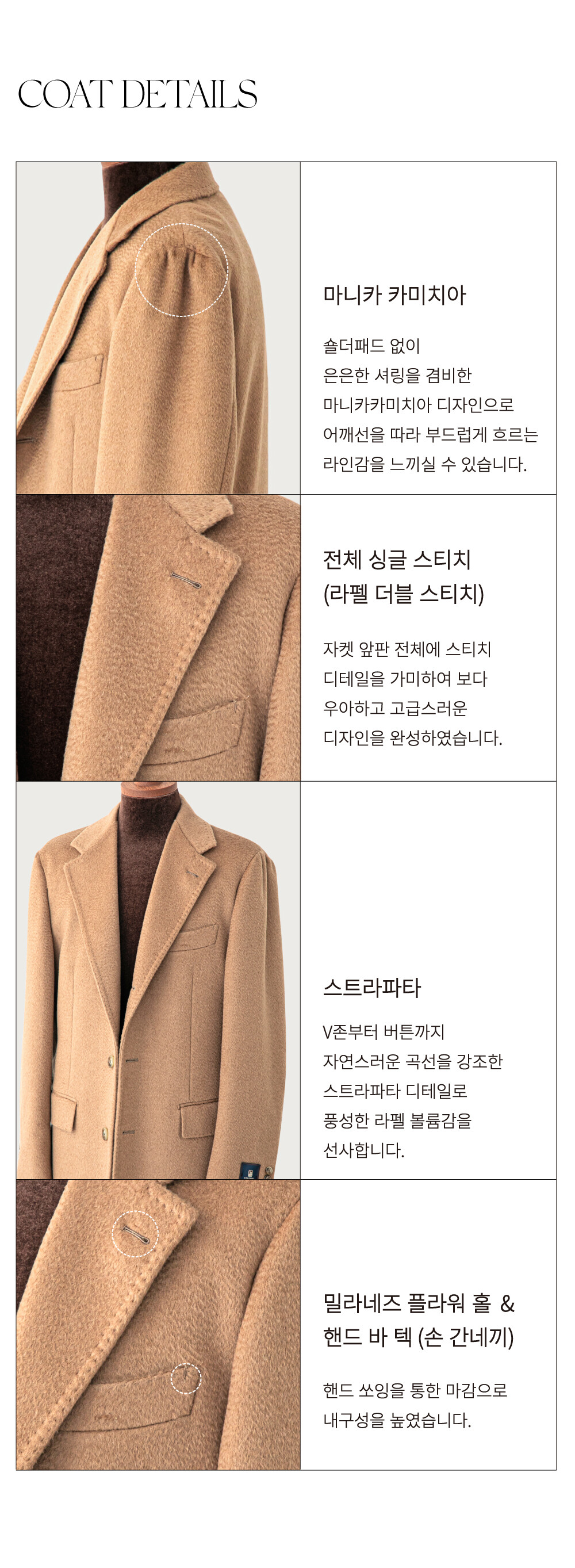 콜롬보의 오랜 경험과 기술력을 바탕으로 탄생한 카멜 헤어 원단을 22FW 컬렉션에서 만나보세요.