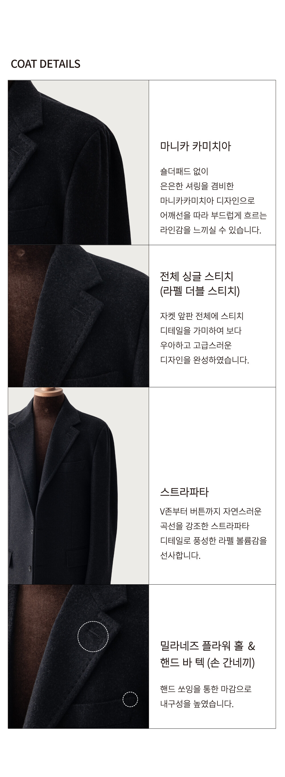 클래식마켓의 25FW RTW 컬렉션 작품(作品)들은 단 한 명의 장인이 핸드 쏘잉으로 작업한 밀라네즈 홀과 핸드 바텍으로 비로소