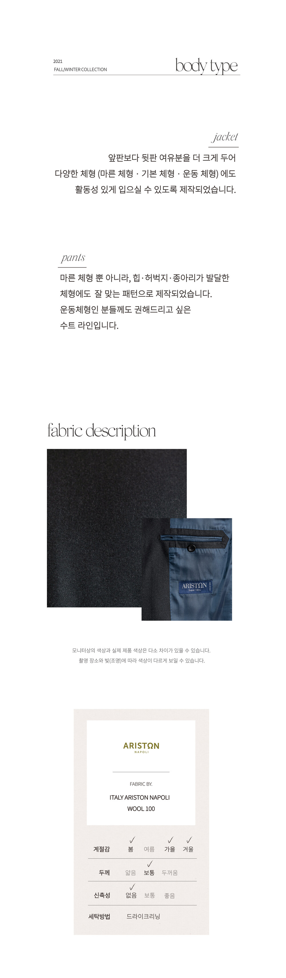 - Fabric : ITALY ARISTON NAPOLI / 320g