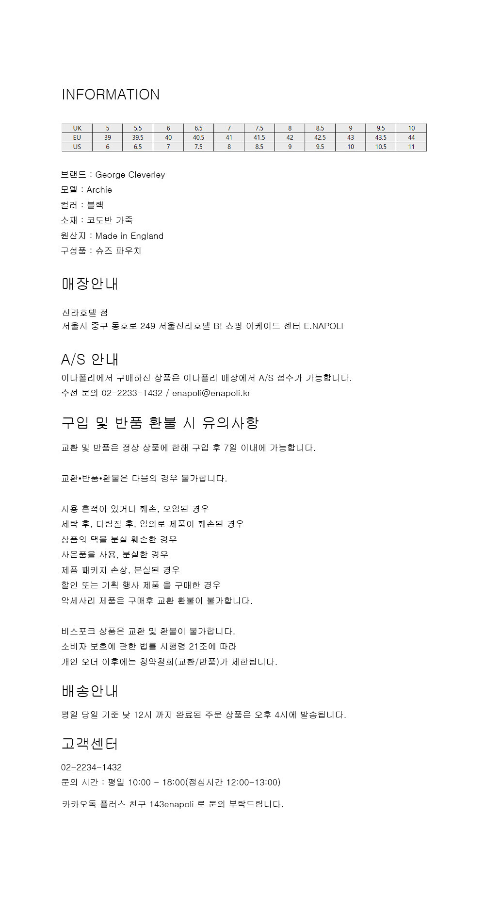 - 교환 및 환불은 NOTICE 페이지의 교환 & 환불 정책을 참고 부탁드립니다.
