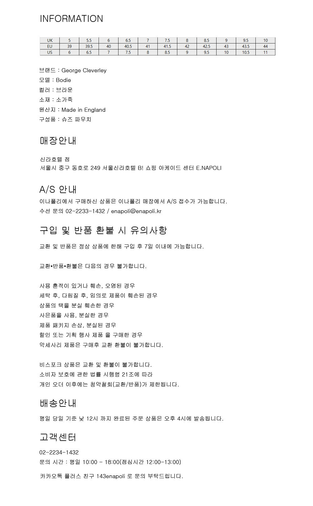 - 교환 및 환불은 NOTICE 페이지의 교환 & 환불 정책을 참고 부탁드립니다.